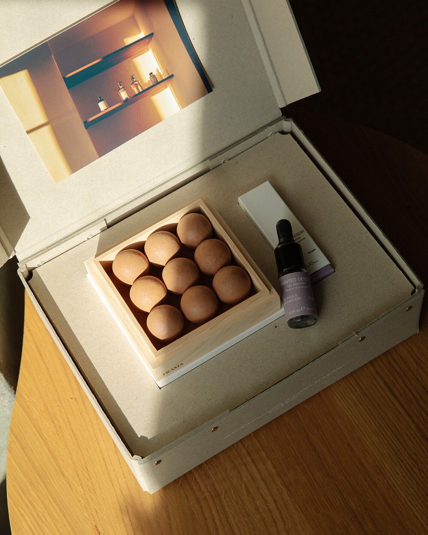 Åpne treboksen forsiktig og drypp fem dråper jevnt over kulene. Fyll på med eterisk olje etter behov for å forsterke duften. Vi anbefaler å lukke lokket etter hver bruk for å bevare kvaliteten og holde duften innelukket i kulene.