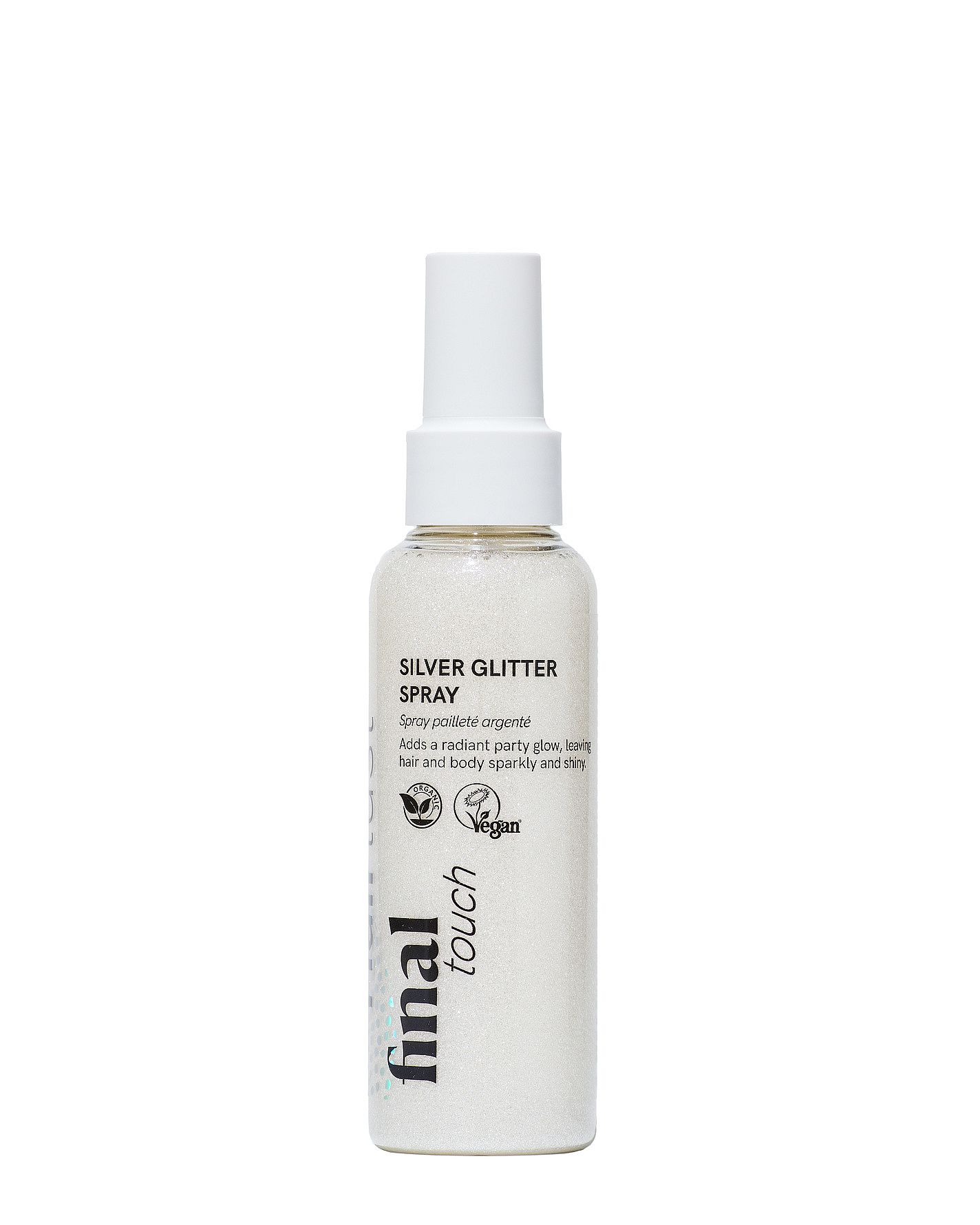 Final Touch™ Silver Glitter Hair Spray er beriket med økologiske ekstrakter fra mango og hyldebær, som beskytter mot skadelige frie radikaler, samtidig som de nærer og pleier både hår og hud. Du får ikke bare en vakker glød, men også effektiv beskyttelse! Med glyserin og propandiol tørker ikke håret ut, men holder både hud og hår fuktige hele dagen – uten å føles tungt eller fettete.