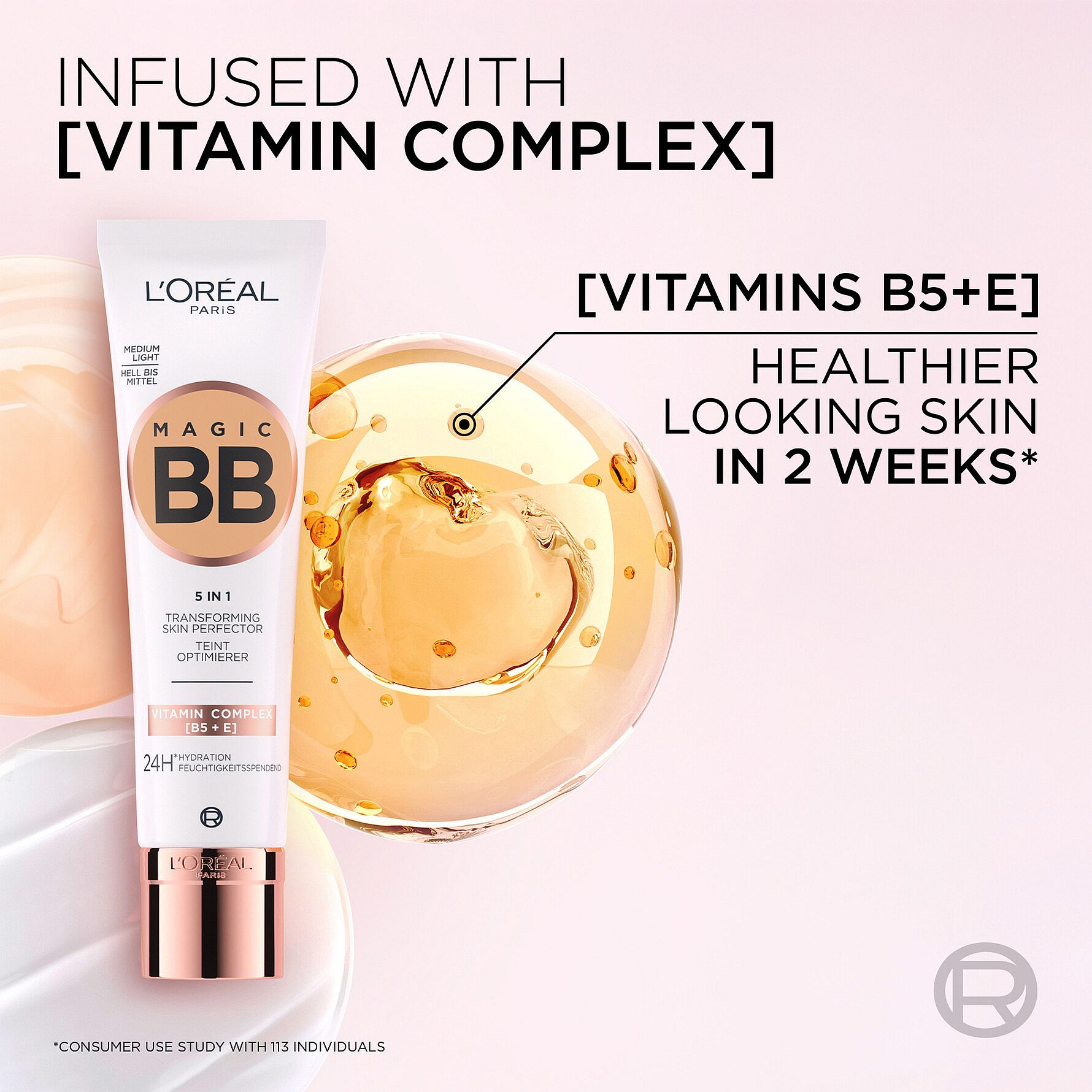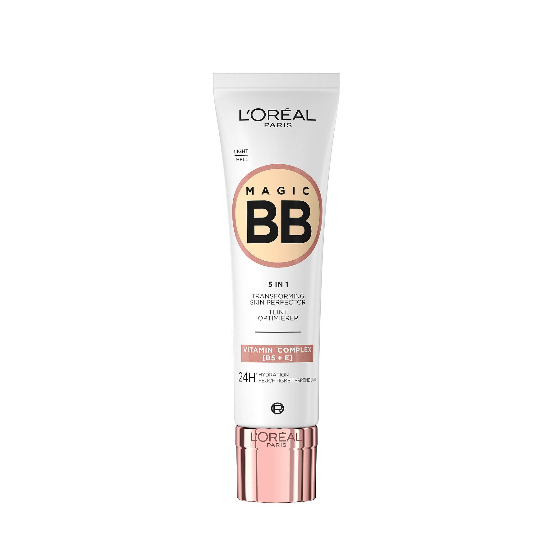Få den perfekte nude looken med L'Oréal Paris Magic BB Cream. En pleiende og lett dekkende BB Cream. Formelen er beriket med E-vitamin + Pro-Vitamin B5 som gir huden din glød og fuktighet i 24 timer*. En lett formel som føles behagelig ved påføring, inneholder innkapslede pigmenter som endrer farge og tilpasses nettopp din hudtone. Skap den perfekte looken med en lett dekkende BB Cream for en jevn hudtone og fuktet glød!