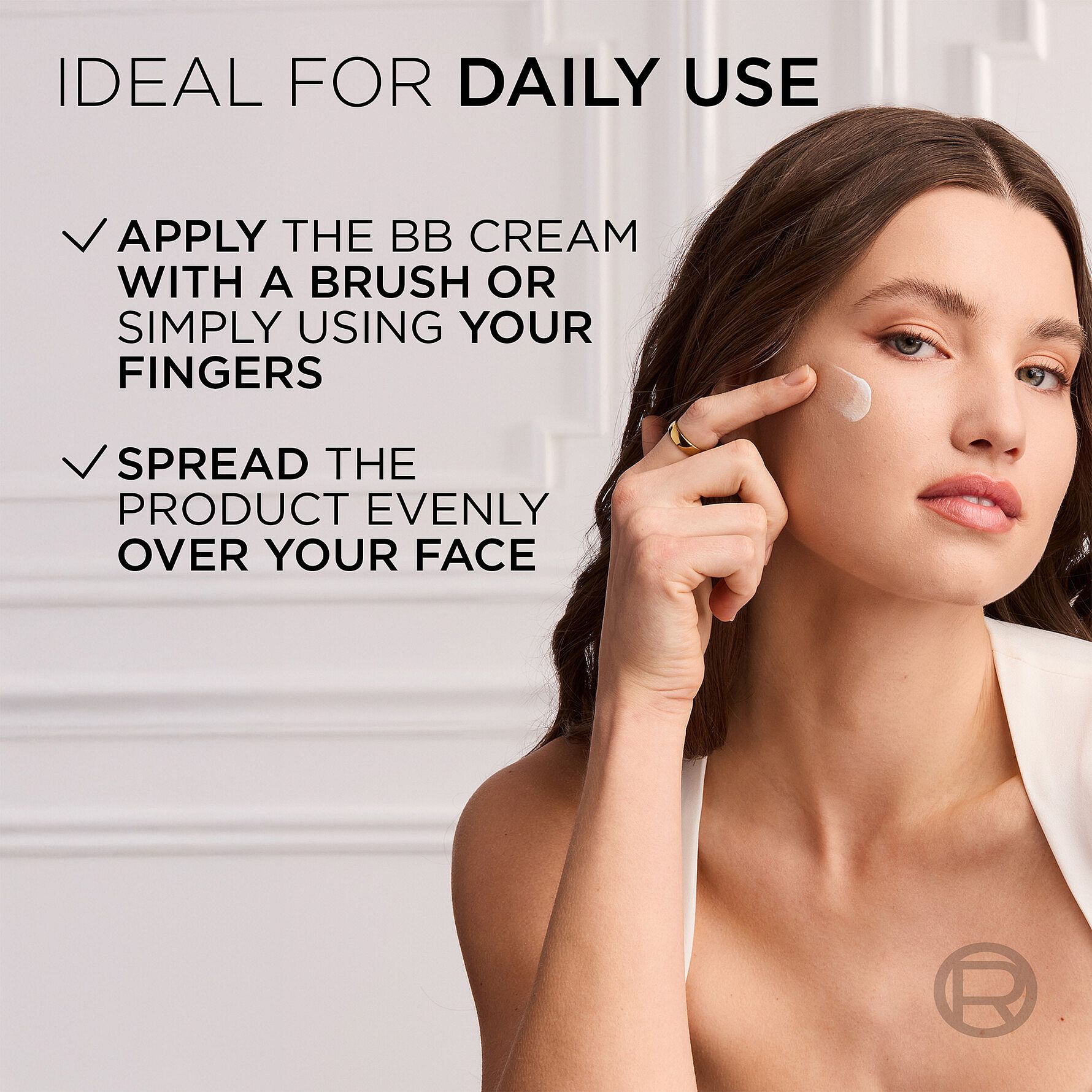 Få den perfekte nude looken med L'Oréal Paris Magic BB Cream. En pleiende og lett dekkende BB Cream. Formelen er beriket med E-vitamin + Pro-Vitamin B5 som gir huden din glød og fuktighet i 24 timer*. En lett formel som føles behagelig ved påføring, inneholder innkapslede pigmenter som endrer farge og tilpasses nettopp din hudtone. Skap den perfekte looken med en lett dekkende BB Cream for en jevn hudtone og fuktet glød!