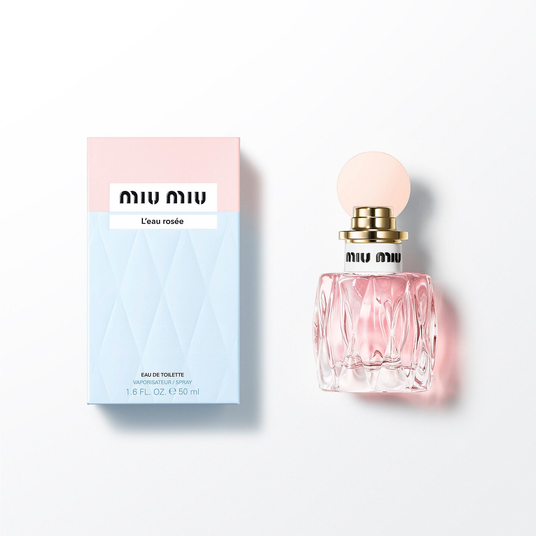 Ved å leke med de to betydningene av "rosée" på fransk, "dugg" og "rosa", vekkes Miu Mius signatur-liljekonvall til live i L’Eau Rosée. Duften har en kjølig, saftig litchi-akkord. En uanstrengt elegant komposisjon der noter av vår og den eksotiske frukten deler lysende rosa fasetter. Luftig hvit musk løfter de lekne notene, og våren blir rosa.